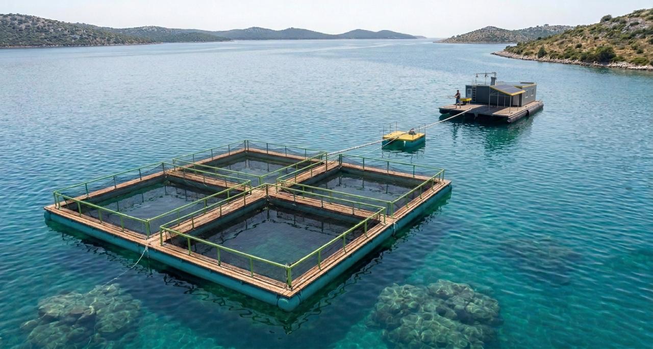 The platform will be permanently moored within the shellfish farm’s concession area, located approximately 600 meters downstream from the Šibenik Bridge, along the right bank of the Krka River estuary in front of Guberina Beach.